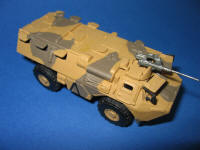 Zum Original: Der Véhicule de l'Avant Blindé (VAB) ist ein französischer allradgetriebener (4x4) Truppentransporter, der u.a. im Französischen Heer verwendet wird. Gefertigt und konstruiert wurde das Fahrzeug von Euro Mobilité Division. 1976 erlangte der VAB Serienreife und wurde an das Heer ausgeliefert. Bis heute wurden etwa 5.000 Stück produziert, wobei ca. 800 Stück ab 1984 exportiert wurden. Das Fahrzeug ist in den meisten Versionen schwimmfähig. Es existieren verschiedene Ausführungen, so gibt es u.a. auch eine sechsrädrige Variante (6x6), die die Exportvariante des VABs darstellt. Im französischen Heer findet die 4x4-Version Verwendung. Technische Daten: Besatzung: 2 + 12 Infanteristen Quelle: Wikipedia Zum Modell: Hersteller: Heller Gebaut habe ich das Modell im Jänner
